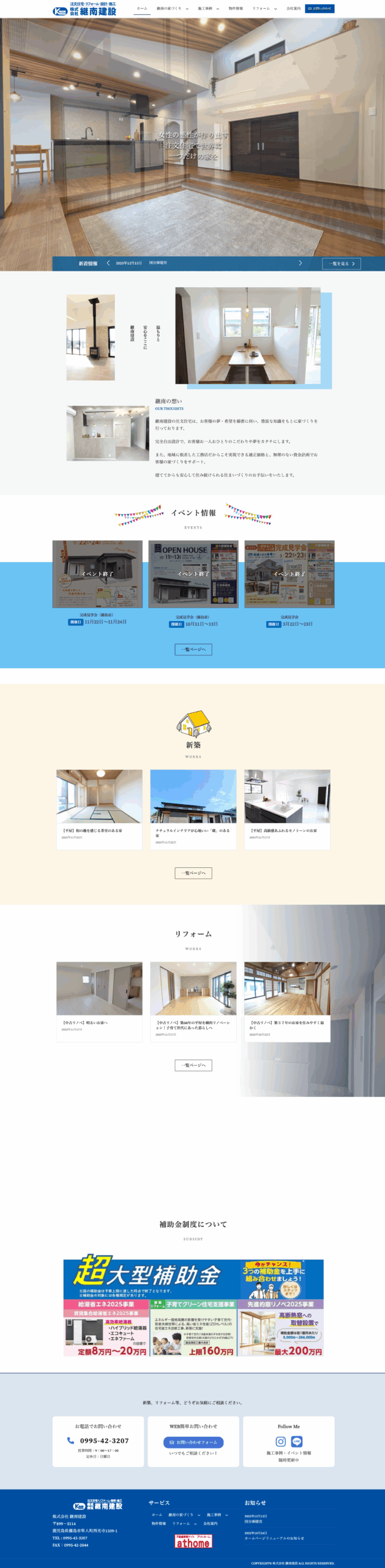 | 備考 | 鹿児島県霧島市の空港近くにある工務店。お客様が希望する注文住宅を、お客様に手が届く価格で提案します。 |